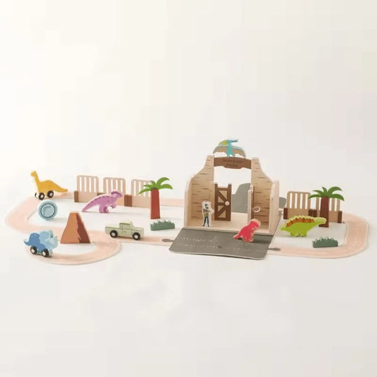 DinoQuest™ – Holz-Dinosaurierpark-Set für Kinder ab 3+ – Fördert Fantasievolles Spielen