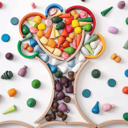 TimberTales™ – Holz-Regenbogen-Bausteine für Kinder ab 3+ – Fördert Kreativität