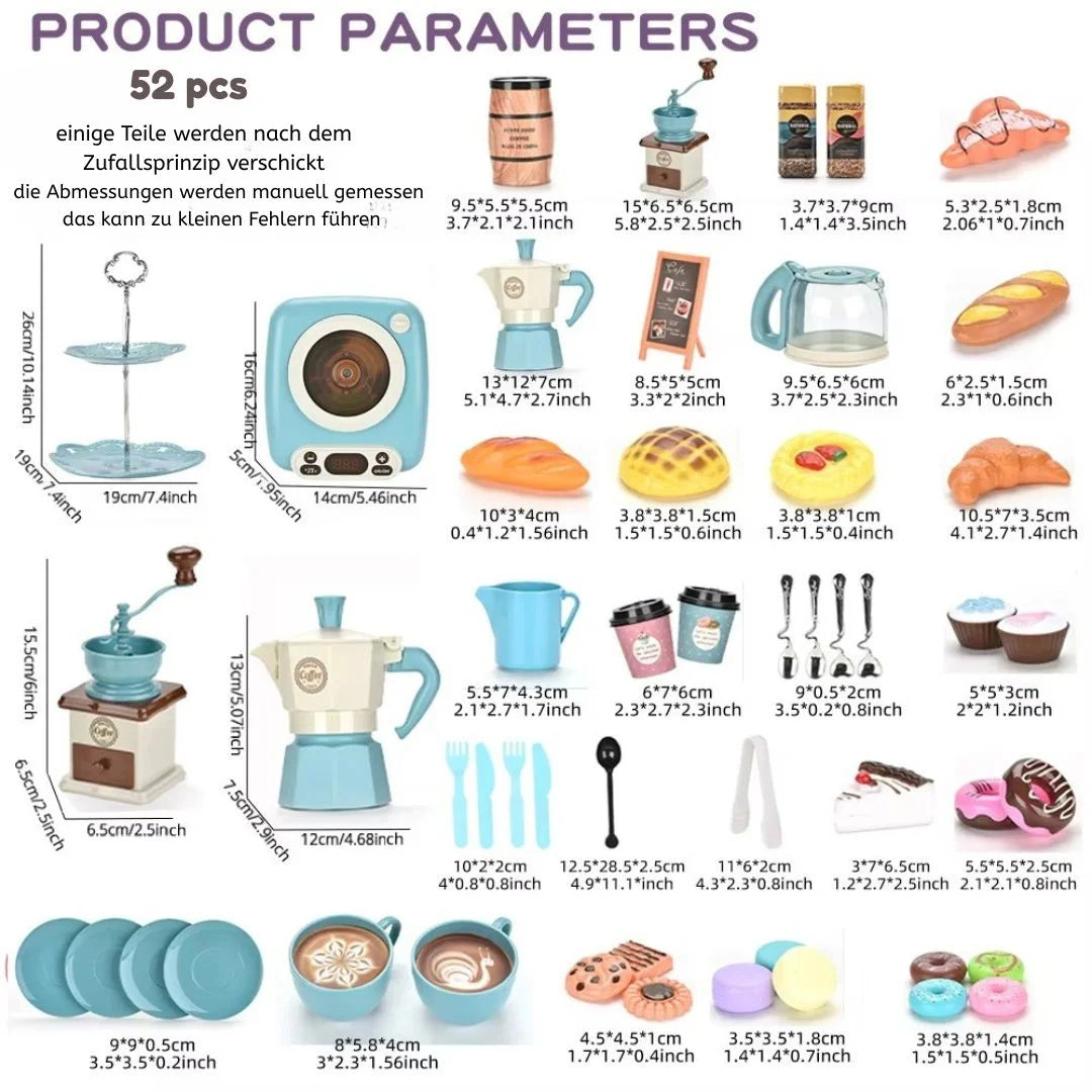 - Set beinhaltet: Kaffeemaschine, Tassen, Lebensmittel, Bäckerei-Zubehör