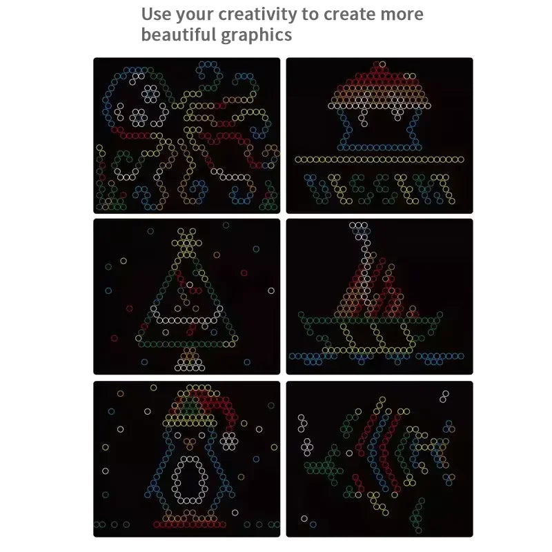 BrightCraft bringt grenzenlose Kreativität ins Spiel! Dieses Lichtspiel für Kinder ermöglicht es, leuchtende Formen, Buchstaben und Muster zu gestalten, indem bunte Stifte ins Leuchtpanel gesteckt werden. Es fördert Feinmotorik, Hand-Auge-Koordination und kreatives Denken. Sicher und einfach zu bedienen, aus robustem, BPA-freiem Kunststoff gefertigt und perfekt für kleine Hände. Ideal für Kinder ab 4 Jahren verwandelt BrightCraft™ jedes Kinderzimmer in eine magische Lichtshow, die Kinder begeistert und Eltern bildschirmfreien Spielspaß bietet.