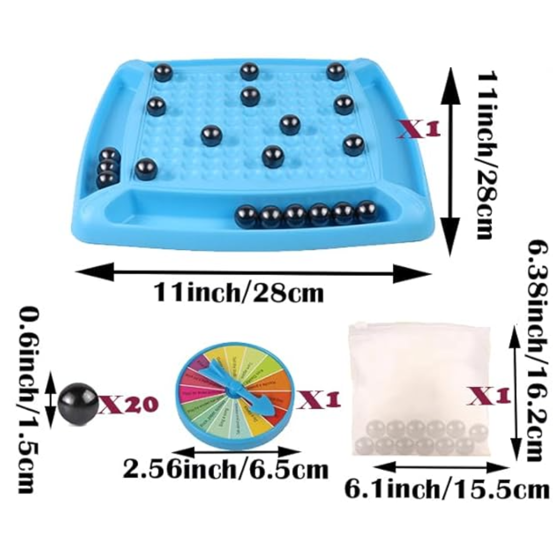- Abmessungen des Spielbretts: 30 cm x 30 cm.