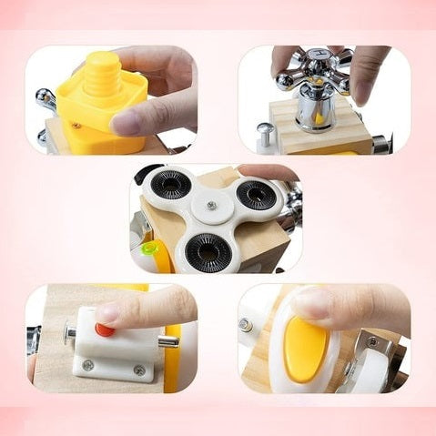 Dieses 7-in-1-Kognitionsspielzeug bietet eine großartige Möglichkeit, die Neugierde Ihres Kindes zu stimulieren. Mit sieben interaktiven Seiten wie einer Fingerspitze Spirale, Karabinerhaken, Einwegschalter, Rad, Tippschalter und Drehschraube. Dieses Spielzeug hilft, kognitive Fähigkeiten, Aufmerksamkeit, Lernfähigkeit und die Entwicklung der visuellen, auditiven und taktilen Sinne zu entwickeln.