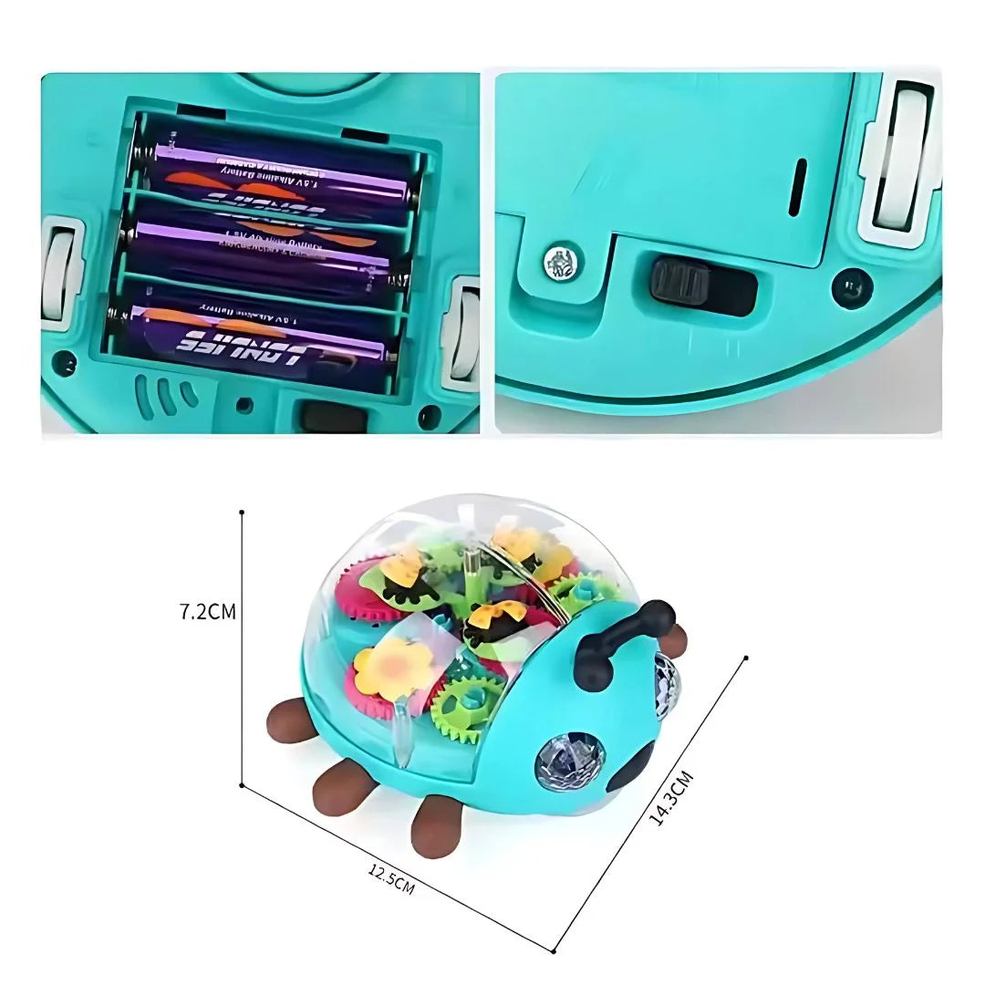 MelodyBug ist der fröhliche Käfer, der Kinder begeistert! Er fährt herum, Zahnräder drehen sich und Musik spielt — perfekt für Kleinkinder, die krabbeln lernen und Spaß haben. Fördert die Motorik auf spielerische Weise.