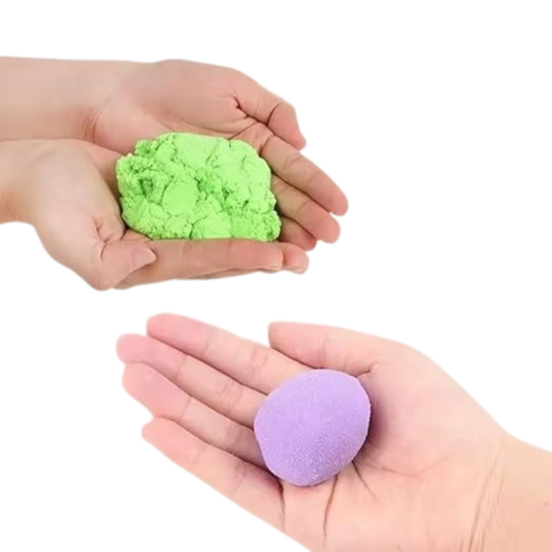 - Mess-Free Play: Der kinetische Sand klebt an sich selbst, nicht an den Händen, was eine einfache Reinigung gewährleistet.