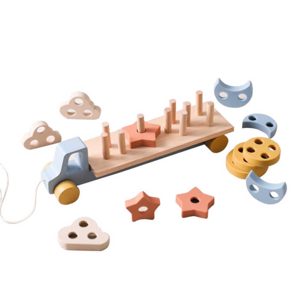 ShapeShuttle – Holz Motorik Stapelauto Spielzeug | Zugauto ab 3 Jahren