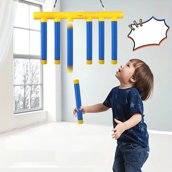 Dieses Trainingsspielzeug ist aus hochwertigem, haltbarem Material gefertigt, widerstandsfähig gegen starke Beanspruchung und einfach zu installieren, ohne Werkzeug. Die Stöcke sind aus umweltfreundlichem EVA gefertigt, mit abgerundeten Kanten, die sich angenehm anfühlen und keine Verletzungen verursachen. Es bietet eine sichere und zuverlässige Wahl für Kinder und Erwachsene, während die Verbesserung der Reflexe, Geschwindigkeit und Beweglichkeit.
