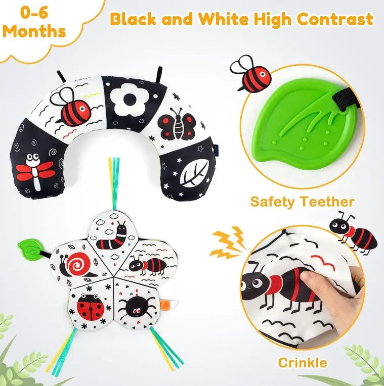 TummyTale ist das perfekte erste Buch für Neugeborene. Mit Schwarz-Weiß-Kontrasten, Knisterseiten, einem babysicheren Spiegel und weichen Beißring-Ecken stimuliert es die visuelle Fokussierung, das auditive Bewusstsein und die sensorische Erkundung von Geburt an. Perfekt für die Bauchlage oder das Spielen im Kinderwagen.